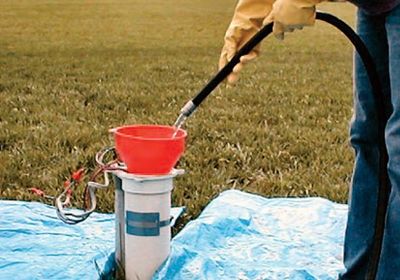 The technician will create an opening by removing the cap at the top of the well to pour in the remediation solution. Well caps vary; this step may be easier for some wells than others.